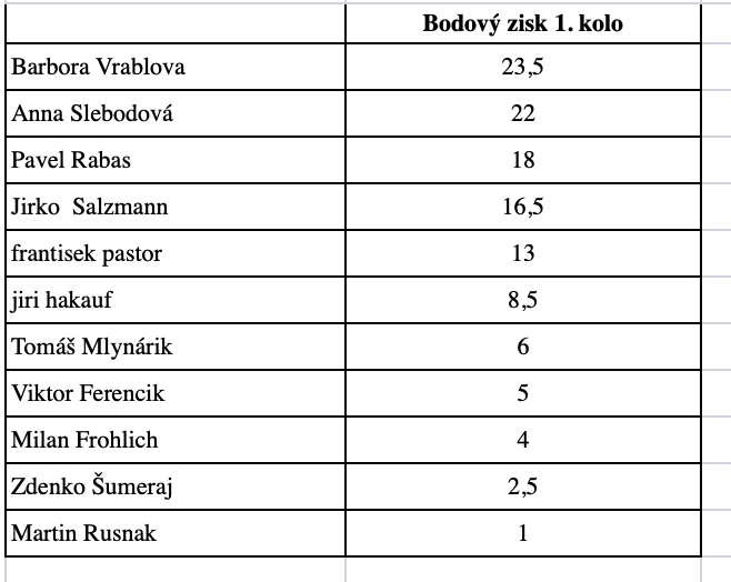 🚀 Kompletné výsledky 1. kola